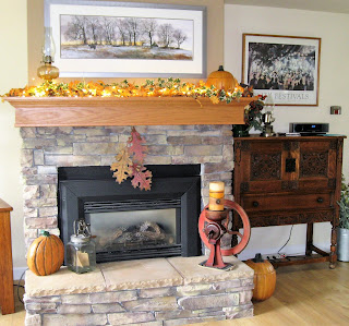 I got a new fall oak leaf swag from Crate & Barrel this year, combined it with my ceramic pumpkins, ivy and miniature lights for a pleasing fall look. We've had a particularly colourful fall this year for some reason and so are enjoying it even if we've had to bag up thousands of leaves from our maple trees.